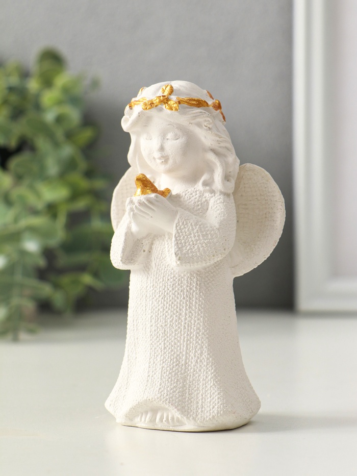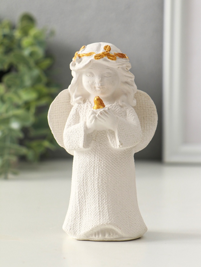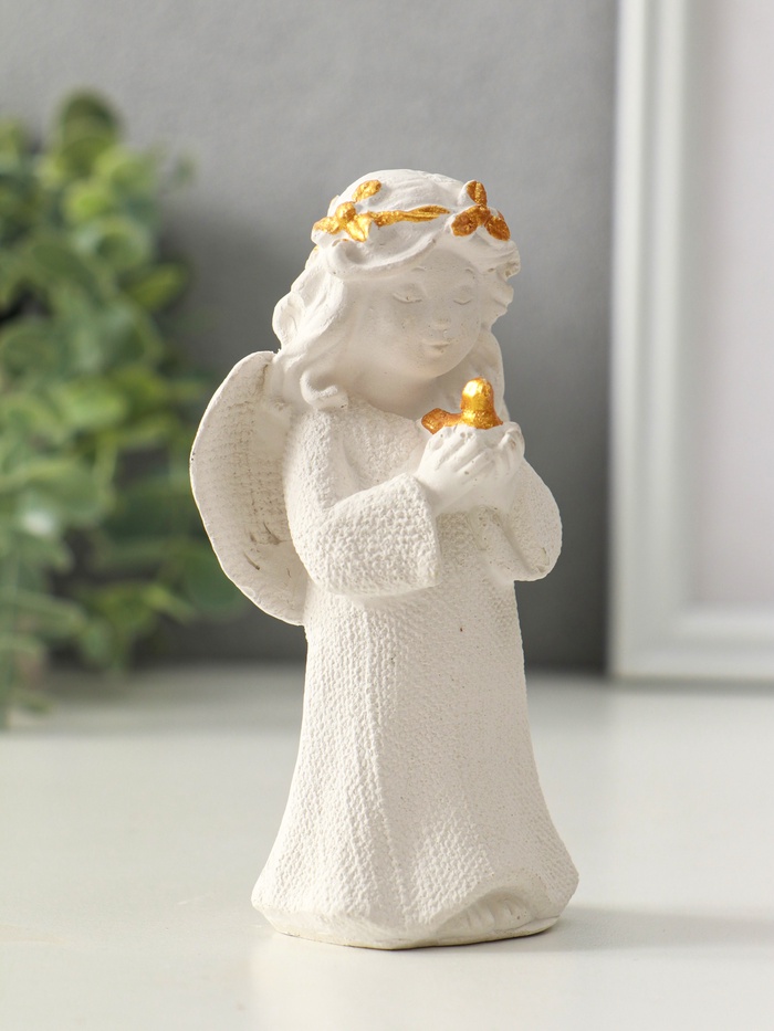 Фигурка гипс «Ангел с птицей», 11×7×4 см, белый с позолотой