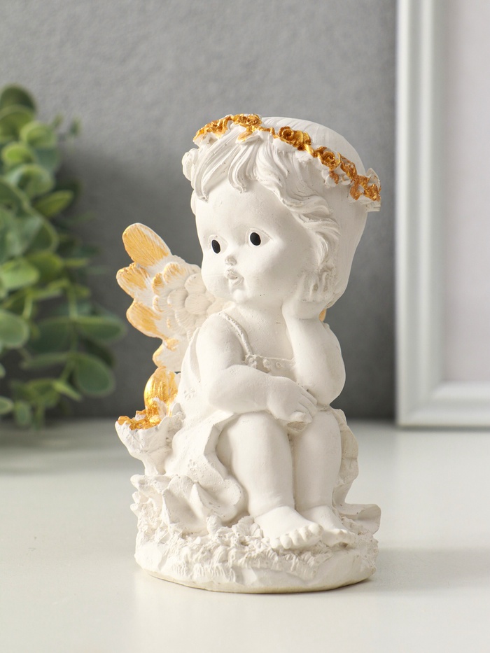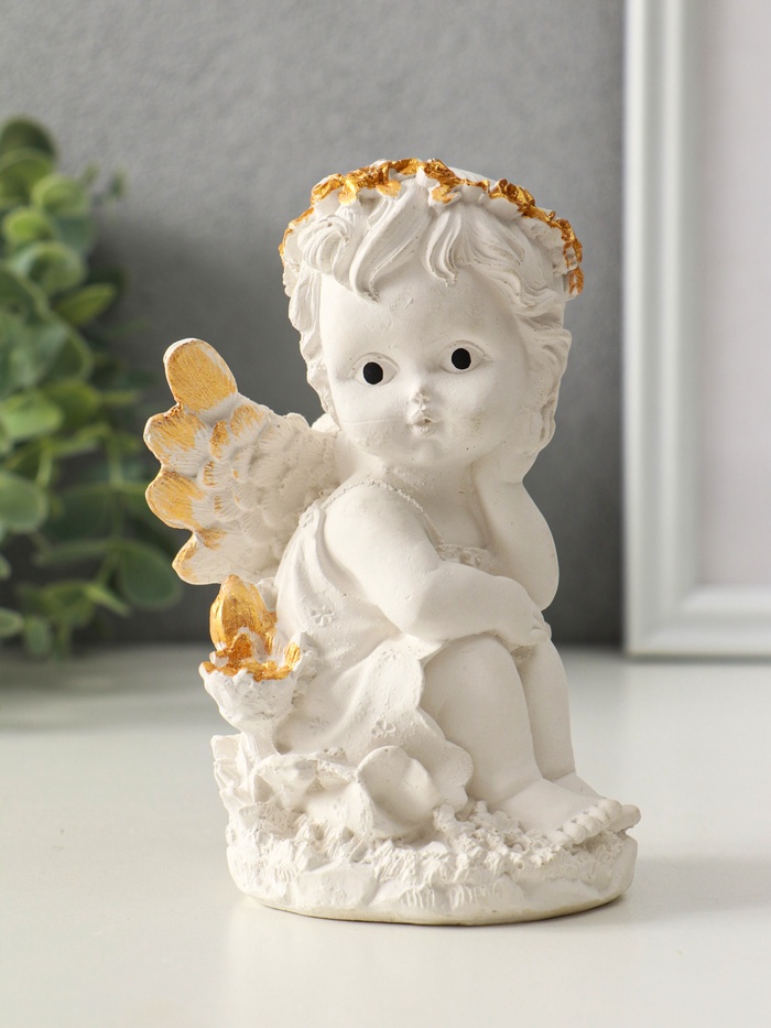 Фигурка гипс «Ангел в цветах», 13×8 см, белая