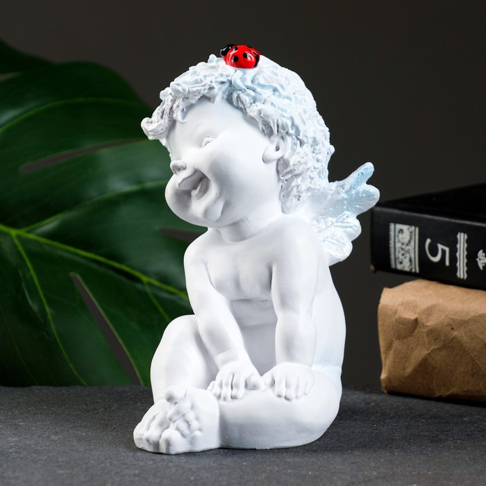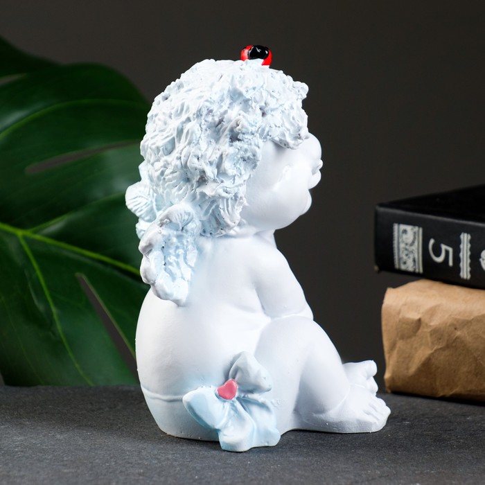 Фигурка гипс «Ангелочек с божьей коровкой», белый, 8.5×10×14 см