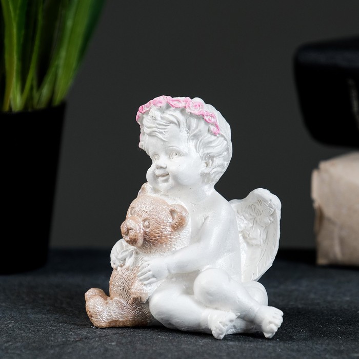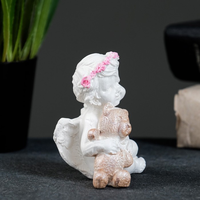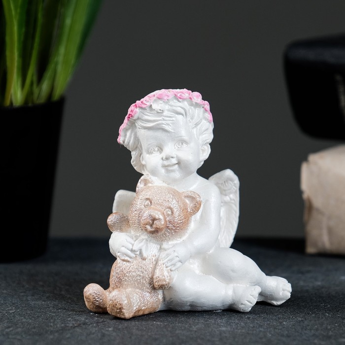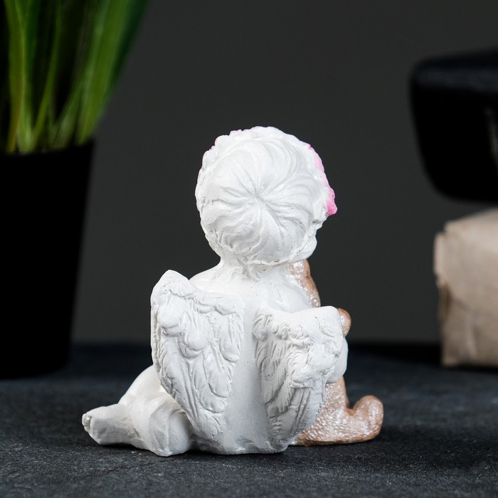 Фигурка гипс «Ангелочек с мишкой сидит», перламутр, 7×7×5 см