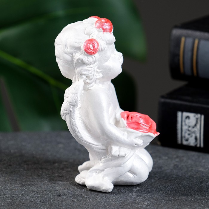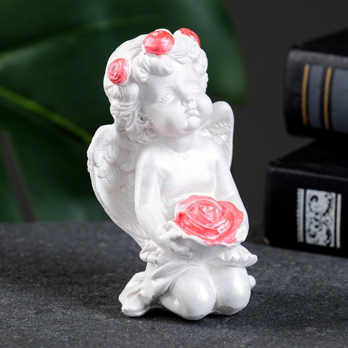 Фигурка гипс «Ангелочек с розой», перламутр, 8×4.5×5 см