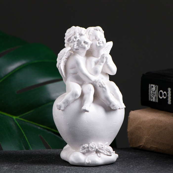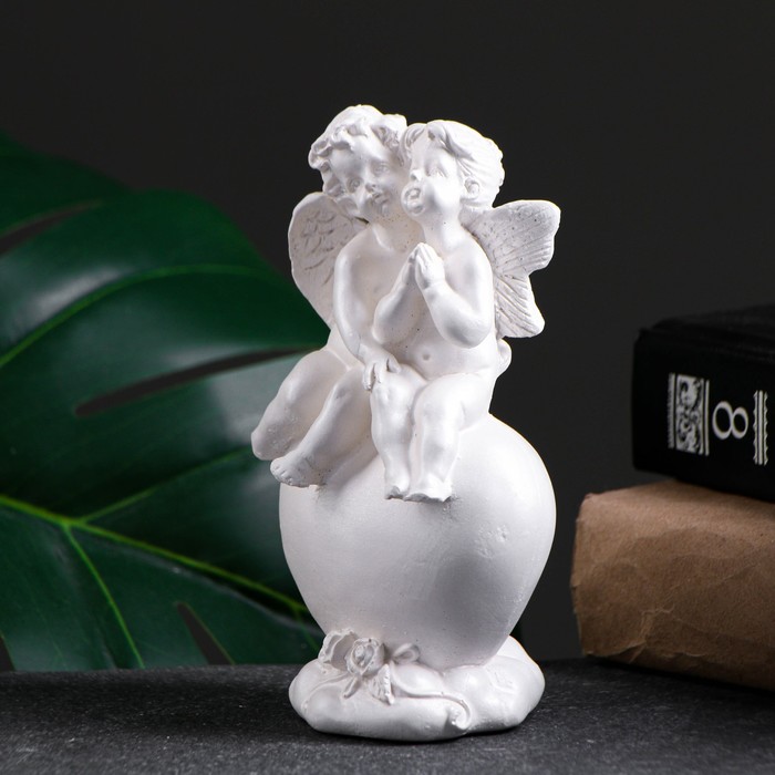 Фигурка гипс «Ангелы на сердце», перламутровый, 14×8×6 см