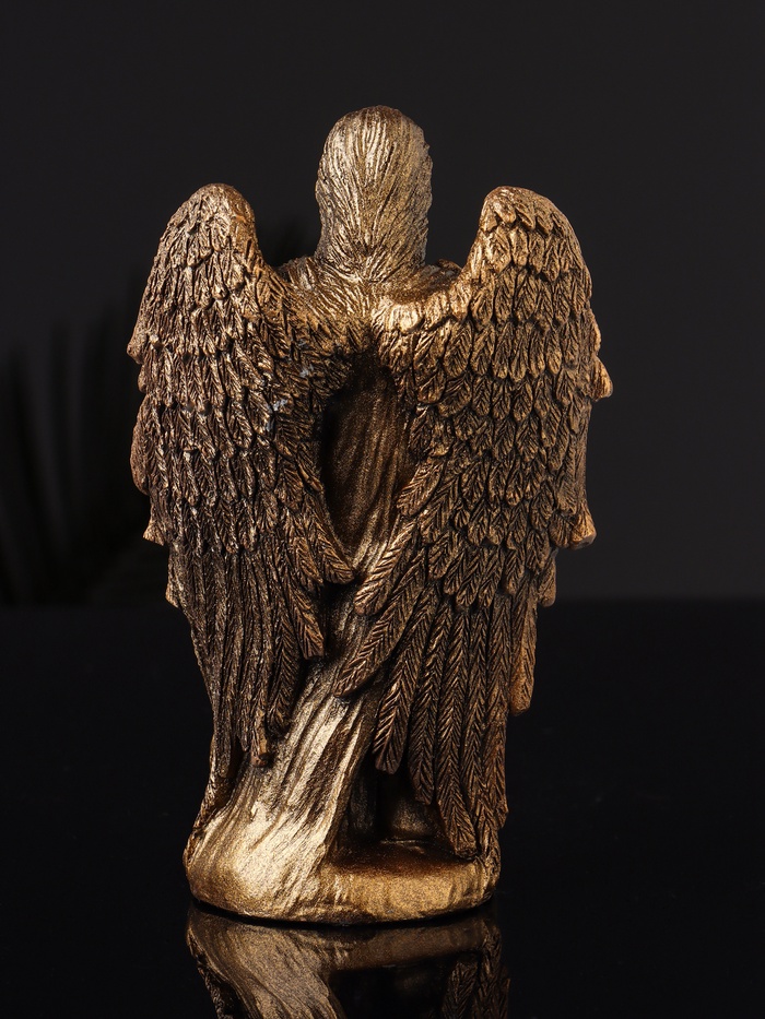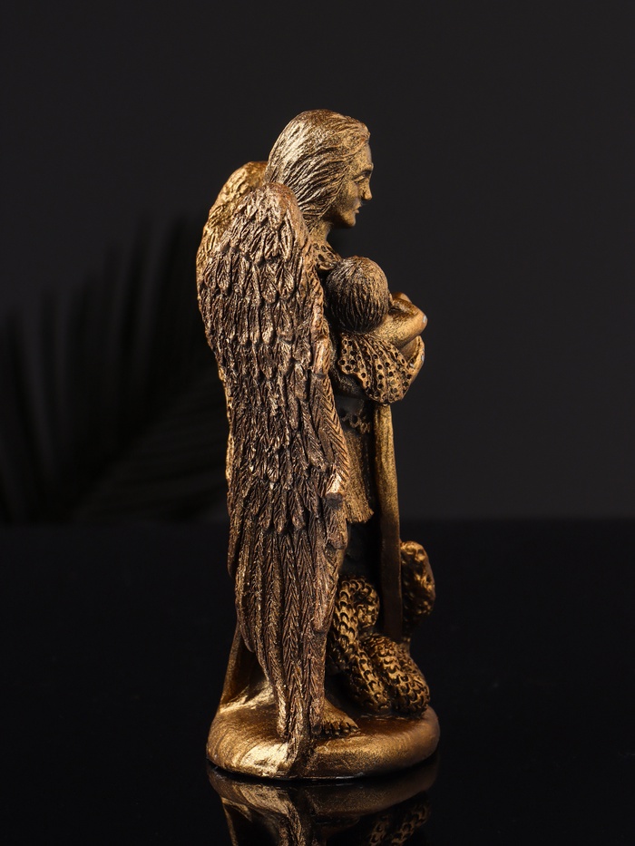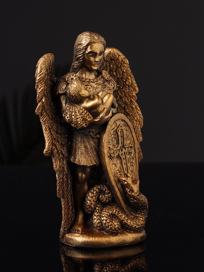 Представляем небольшой, но удивительно значимый элемент декора, способный придать вашему дому атмосферу возвышенности и духовности. Эта изящная фигурка, выполненная под бронзу, станет как символом защиты, так и акцентом вашего интерьера. Её размеры — 14×9×4 см — делают её универсальным выбором для размещения на полке, комоде или праздничном столе.