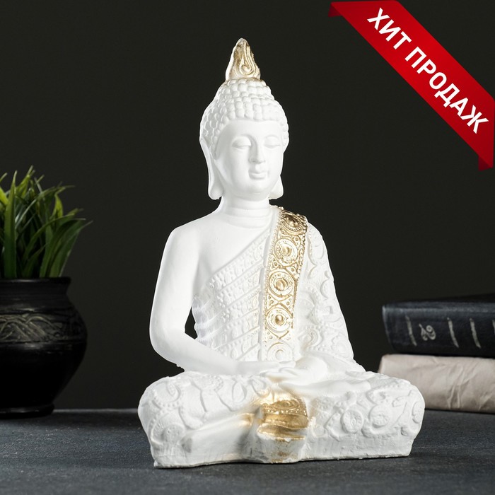 Фигурка гипс «Будда малый», 16×9×23 см, бело-золотая