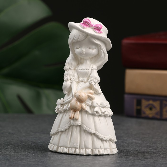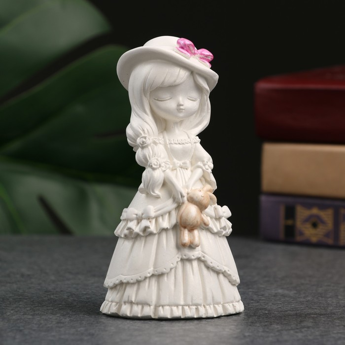Фигурка гипс «Девочка с зайкой», перламутр, 11 см