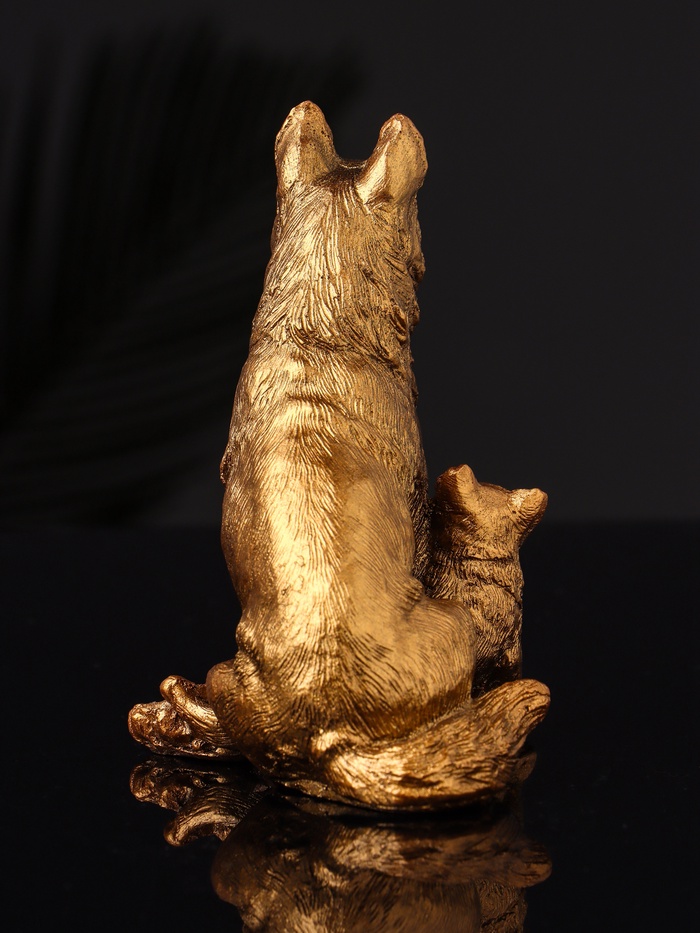 Фигурка гипс «Овчарка с щенками», 10×7 см, бронза