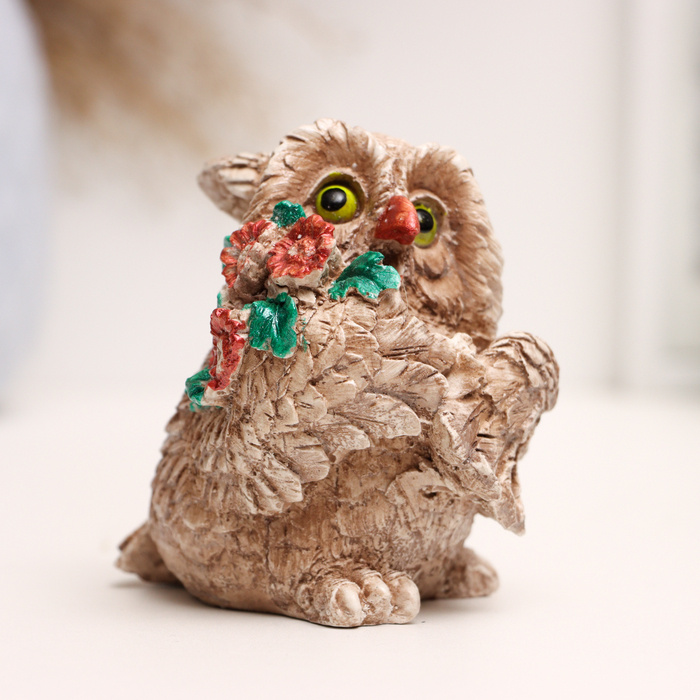 Фигурка гипс «Сова с букетом», 8×6×6 см