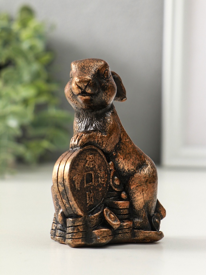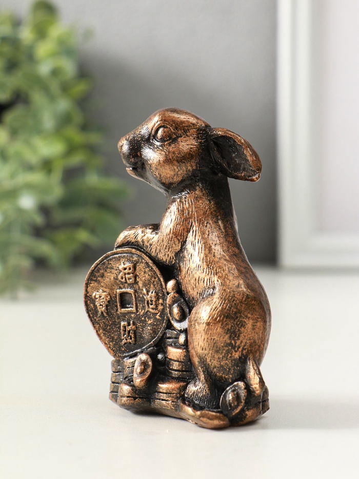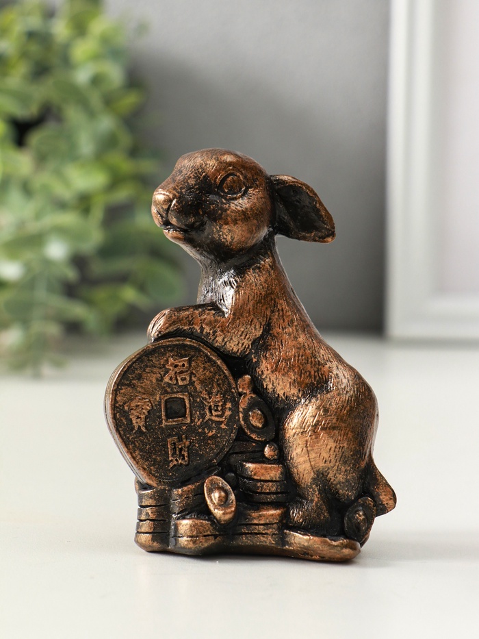 Фигурка гипс «Заяц на деньгах», 10 см, винтажная бронза