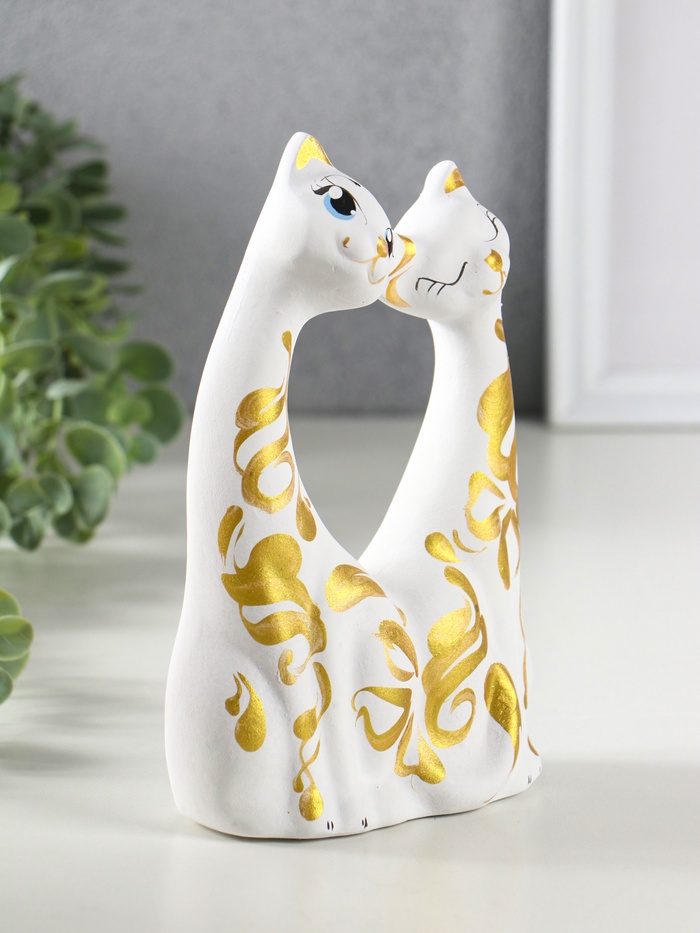 Фигурка керамика «Коты влюбленные», белые, 6×11×17 см