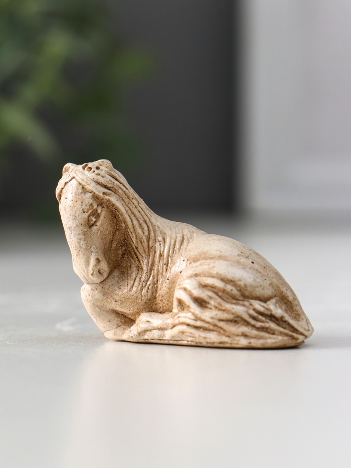 В восточной философии нэцкэ — это не просто миниатюрная скульптура, а хранитель мудрости и оберег, приносящий своему владельцу удачу. Эта филигранно выполненная фигурка отдыхающего коня воплощает в себе идею гармонии, спокойствия и мудрого созерцания, привнося в пространство атмосферу умиротворения.