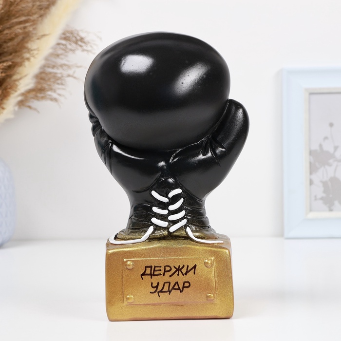 Копилка для денег «Боксерская перчатка», гипс, чёрная с золотом, 12×14×24.5 см