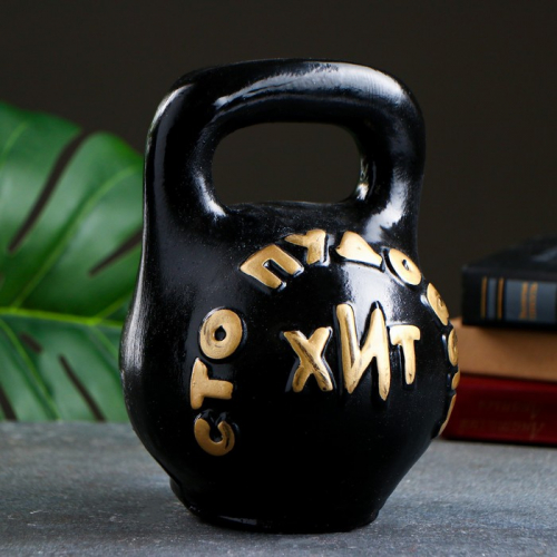 Копилка для денег «Гиря с гербом», гипс, чёрная, 14×14×19 см