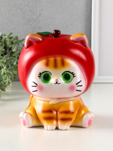Копилка для денег «Кот в костюме яблоко», гипс, красный, 21×17×17 см