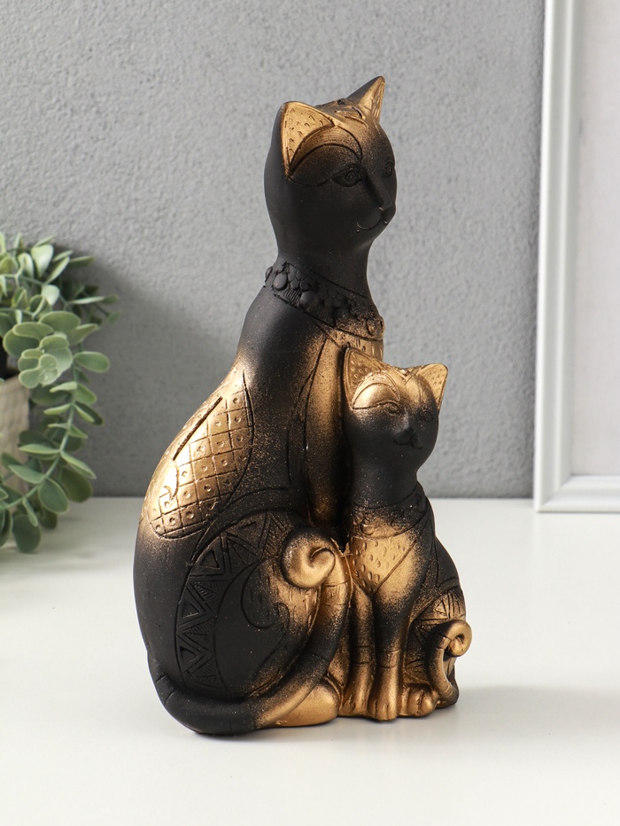 Копилка для денег «Коты Фараоны», гипс, чёрная в золоте, 27.5×15×9 см