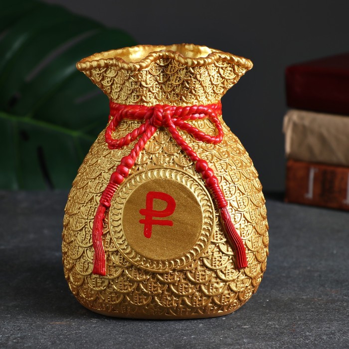 Копилка для денег «Мешок денег», гипс, рубль красный, золото, 15 см