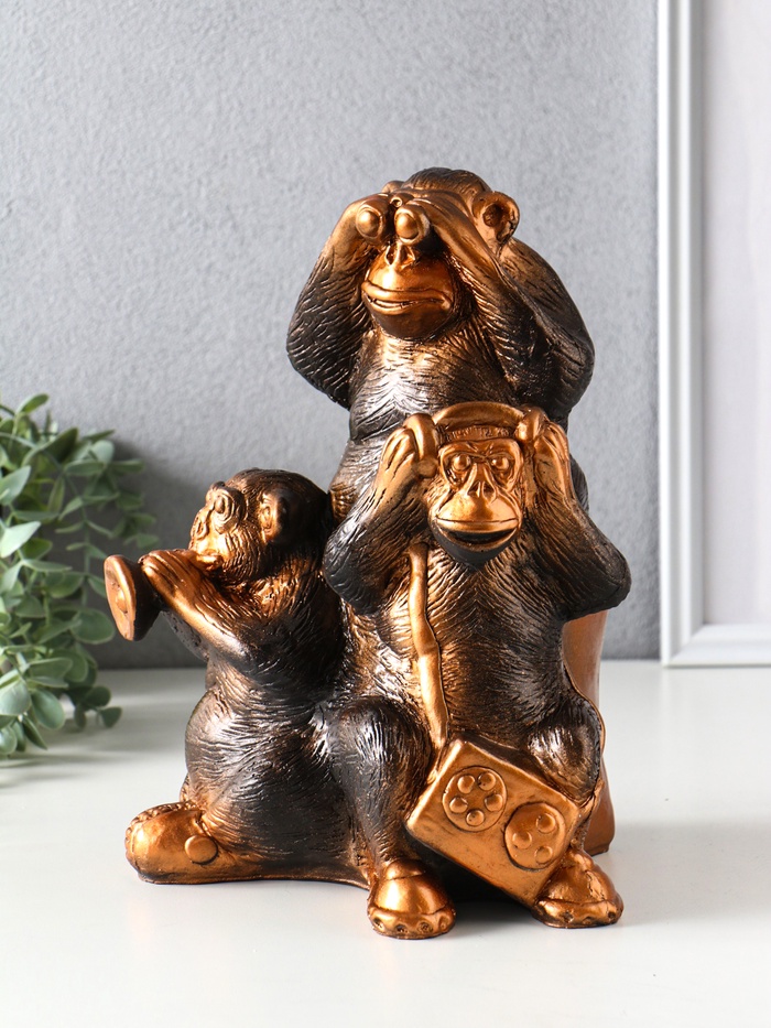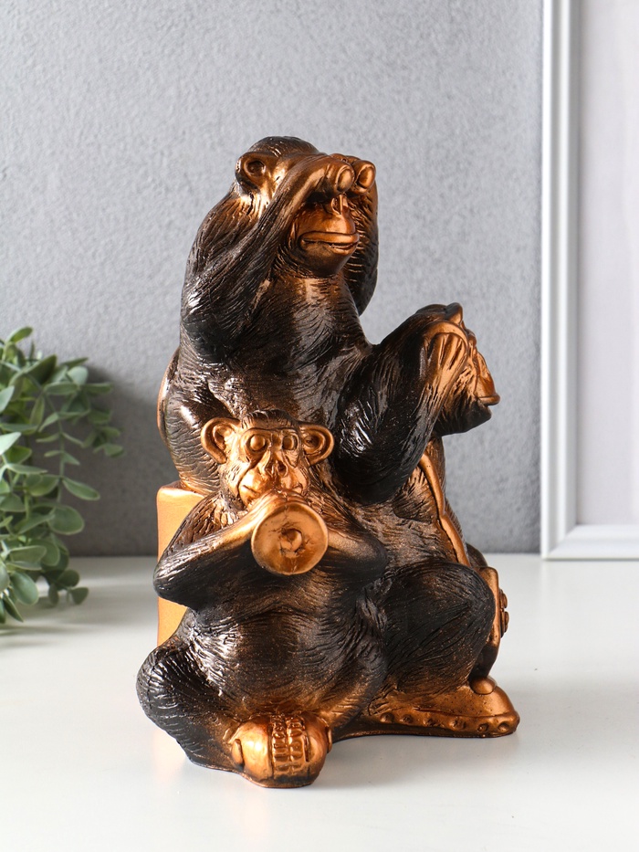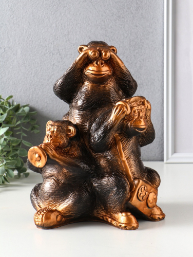 Копилка для денег «Обезьяны: всё слышу, всё вижу, всё скажу», гипс под бронзу, 28×21.5×16 см
