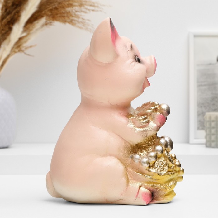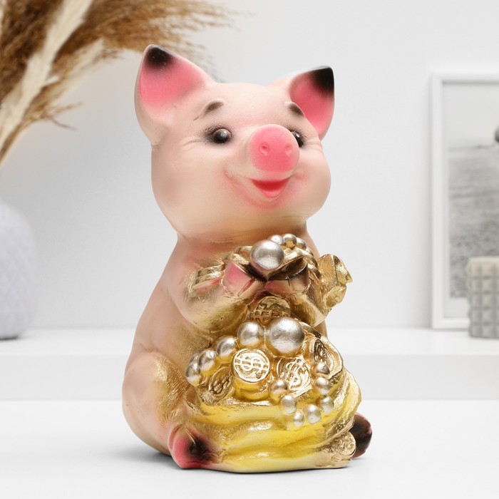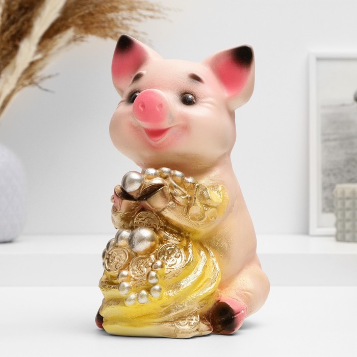 Копилка для денег «Поросёнок большой с мешком», гипс, 17×14×24 см, МИКС