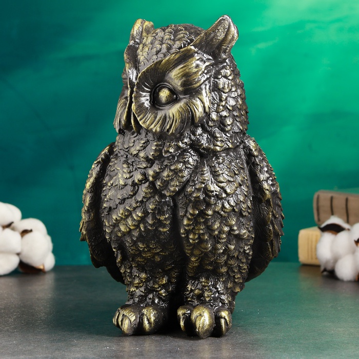 Копилка для денег «Сова большая», гипс, чёрно-золотая, 27 см