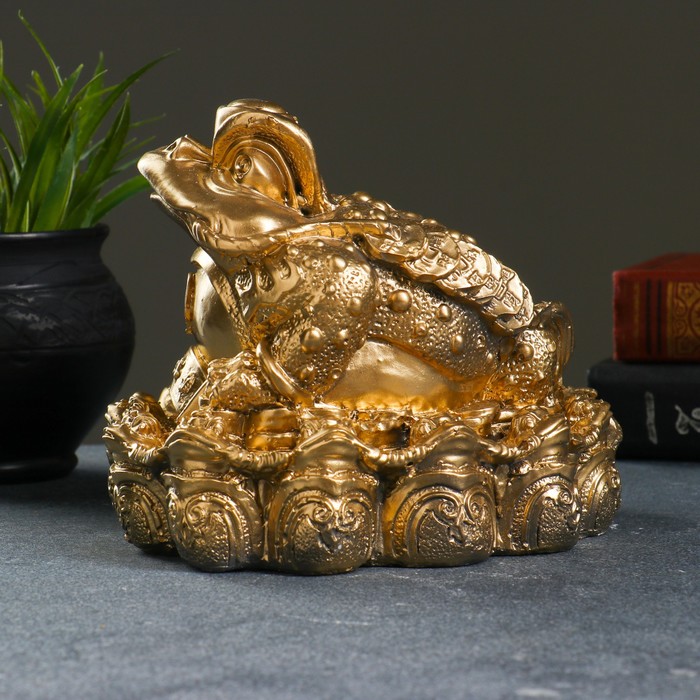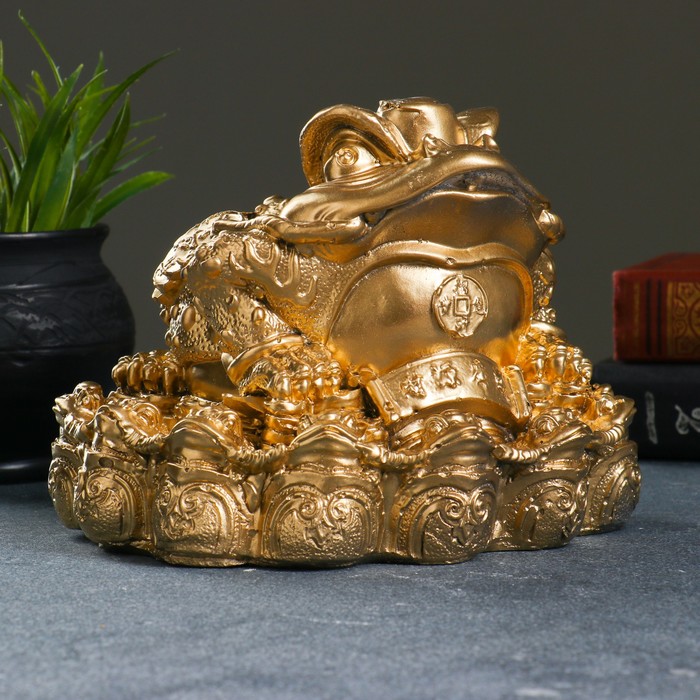 Копилка для денег «Жаба фэн-шуй», гипс, под золото, 18×18 см