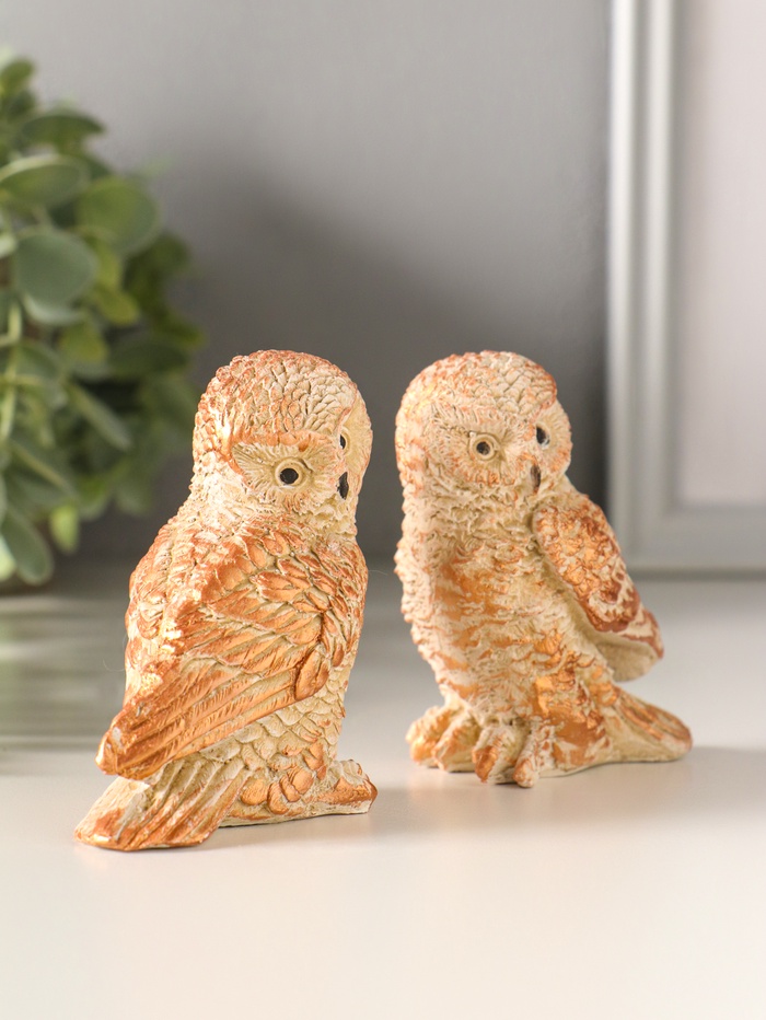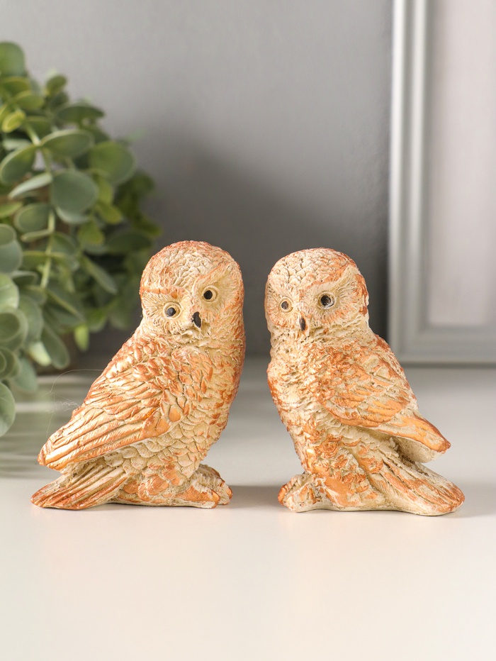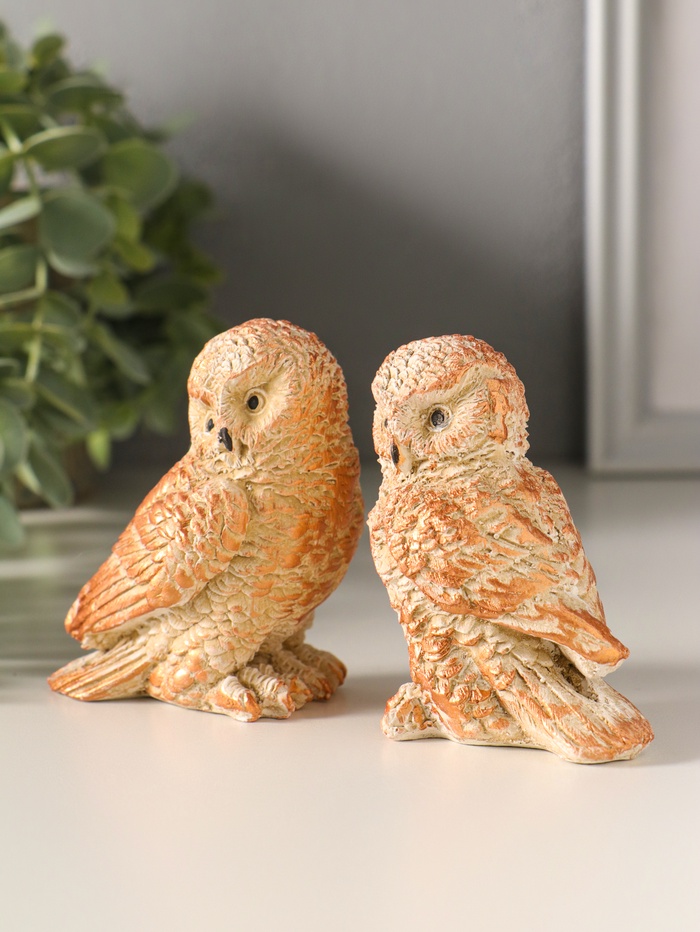 Набор фигурок 2 шт. «Два совенка», 8×8 см, бежевый