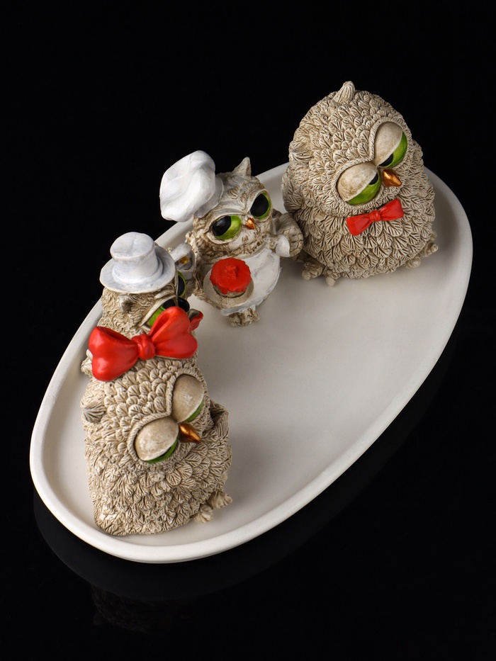 * Готовое решение: набор из четырёх сов на подносе не требует дополнительных элементов — просто разместите их там, где хотите создать уют.