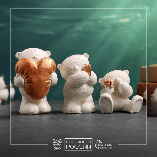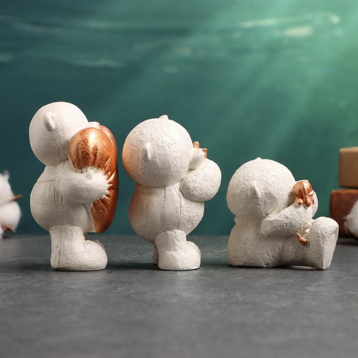 Набор фигурок гипс «Мишки с подарками», 3 шт., 10 см