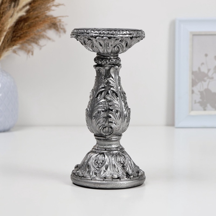 Подсвечник на 1 свечу «Ажурный лист», 19.5×10 см, серебро