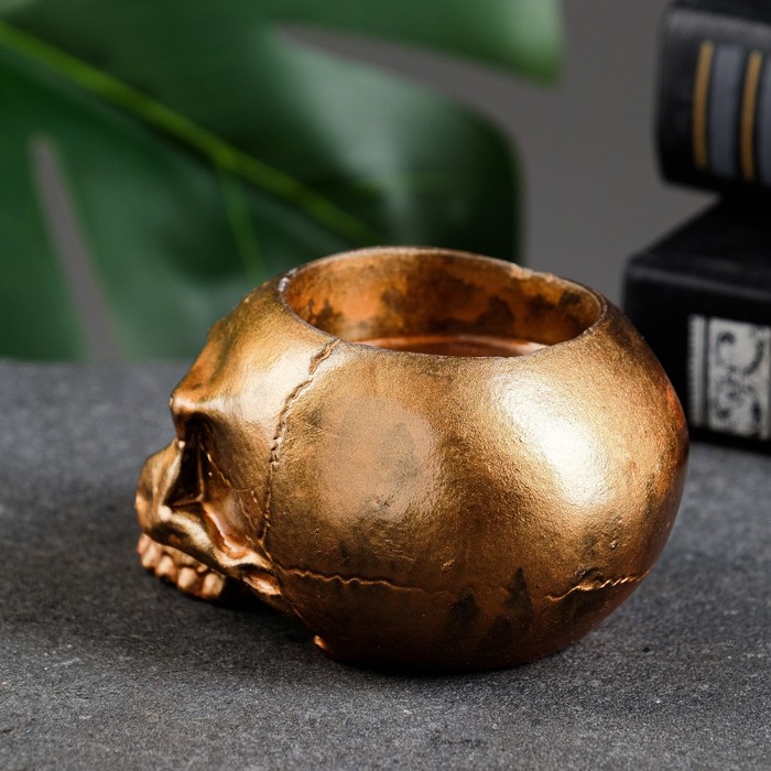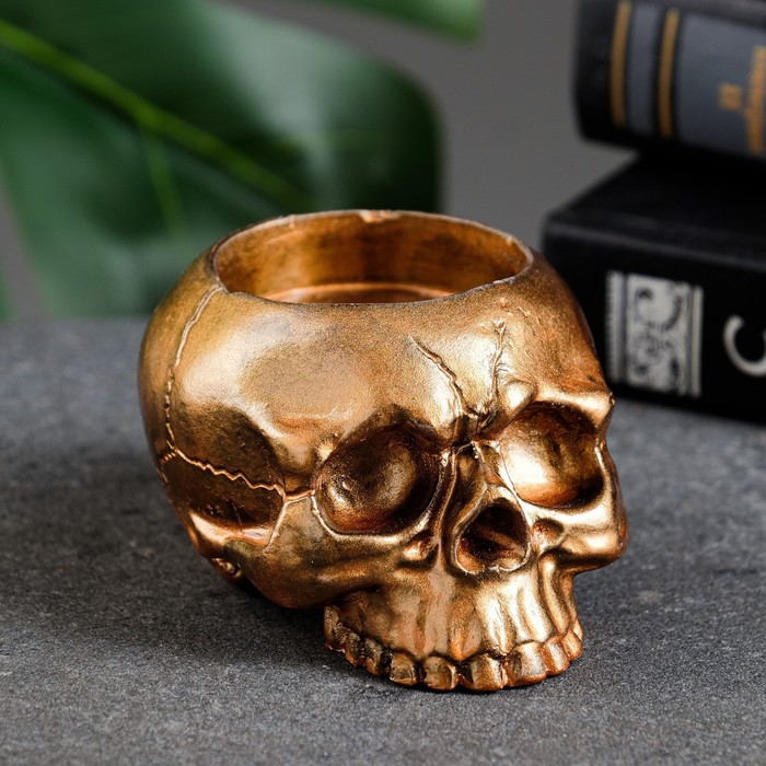 Подсвечник на 1 свечу «Череп», гипс, бронза, 9×7×5 см