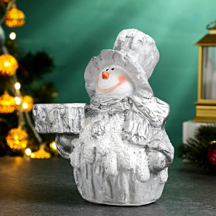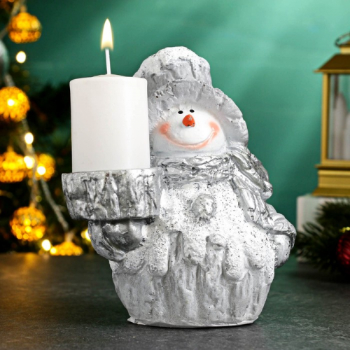 Подсвечник на 1 свечу «Снеговичок», полистоун, 13×15 см