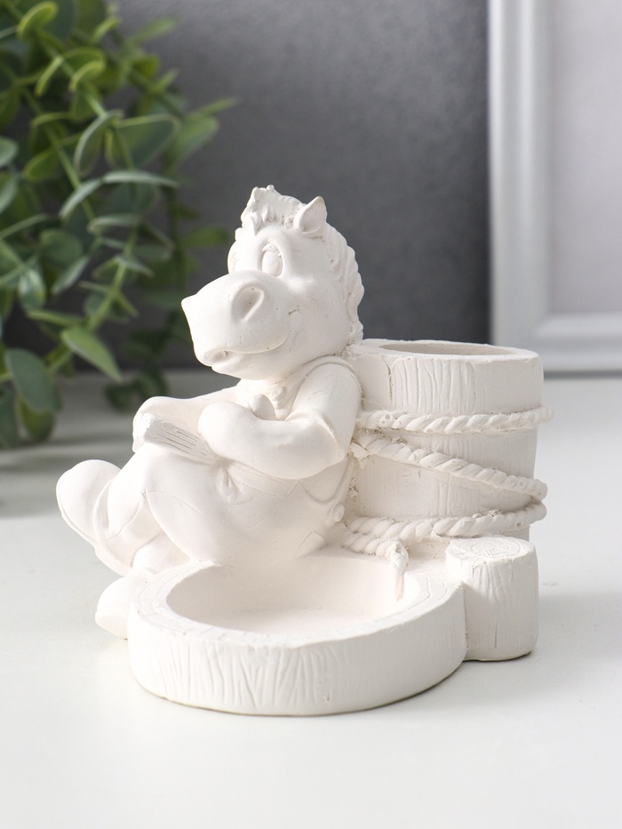 Подсвечник на 2 свечи «Конь с книгой», гипс, 10×11×11 см, натуральный