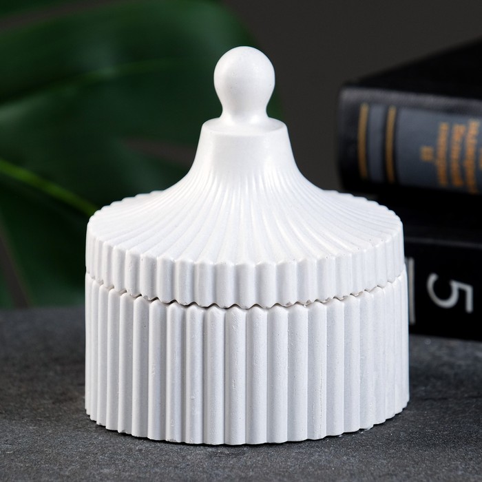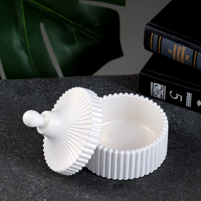 Шкатулка для украшений с крышкой «Элегия», гипс, круглая, перламутр, 8×8×8 см