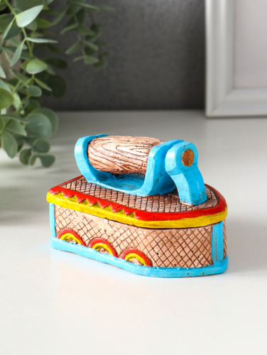* Фигурный дизайн в виде утюжка: Необычная форма шкатулки сразу привлекает внимание. Это готовый декоративный элемент, который вносит в обстановку нотку ретро-стиля и домашнего уюта.