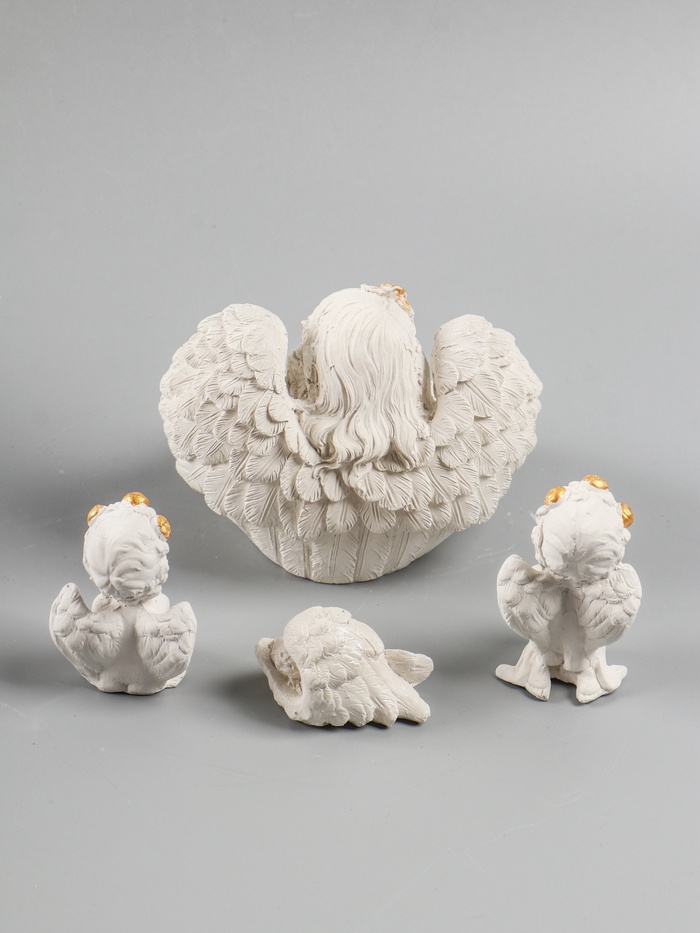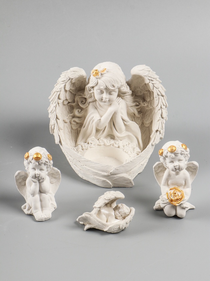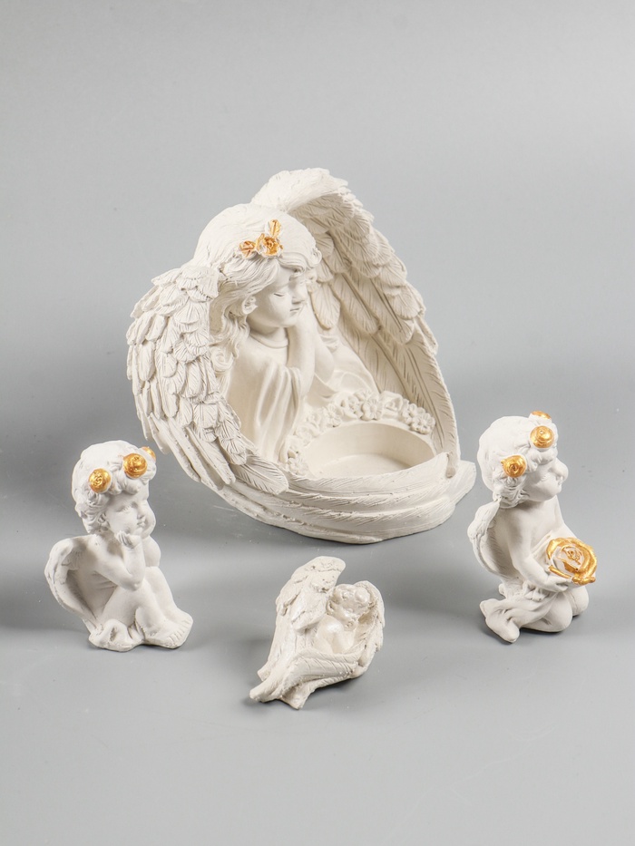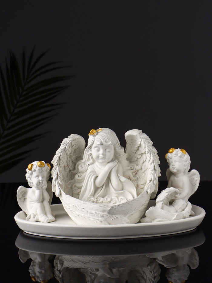 Представляем набор, который станет настоящим источником вдохновения и уюта в вашем доме. Композиция из гипсовых фигурок ангелов на элегантном подносе сочетает в себе нежность белого цвета с благородными золотистыми акцентами, создавая атмосферу тепла и духовности. Размеры делают её идеальным дополнением для любого интерьера: от классического до современного.