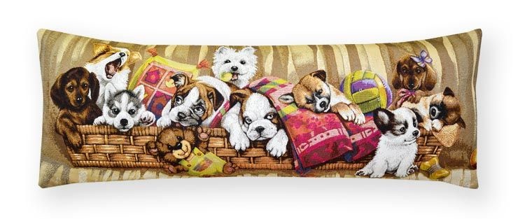 Игривые щенята в корзине- гобеленовая наволочка