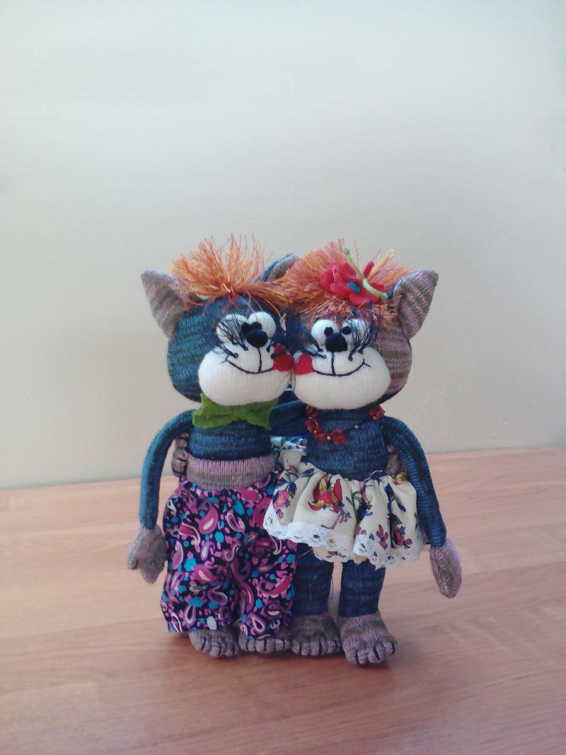 Описание: Игрушка "Парочка, кот с кошкой" ручная работа, 35-40см.