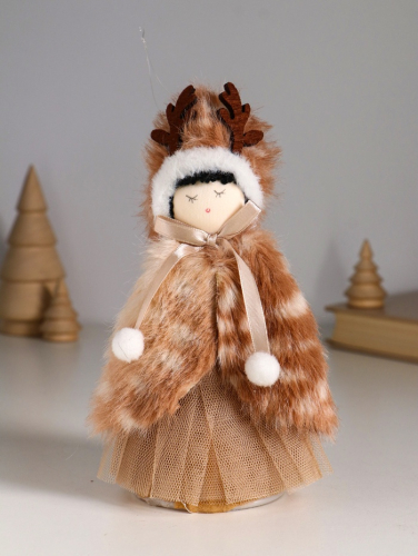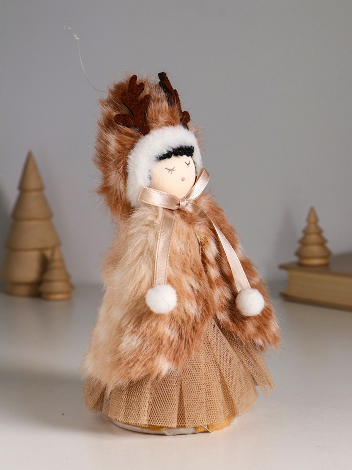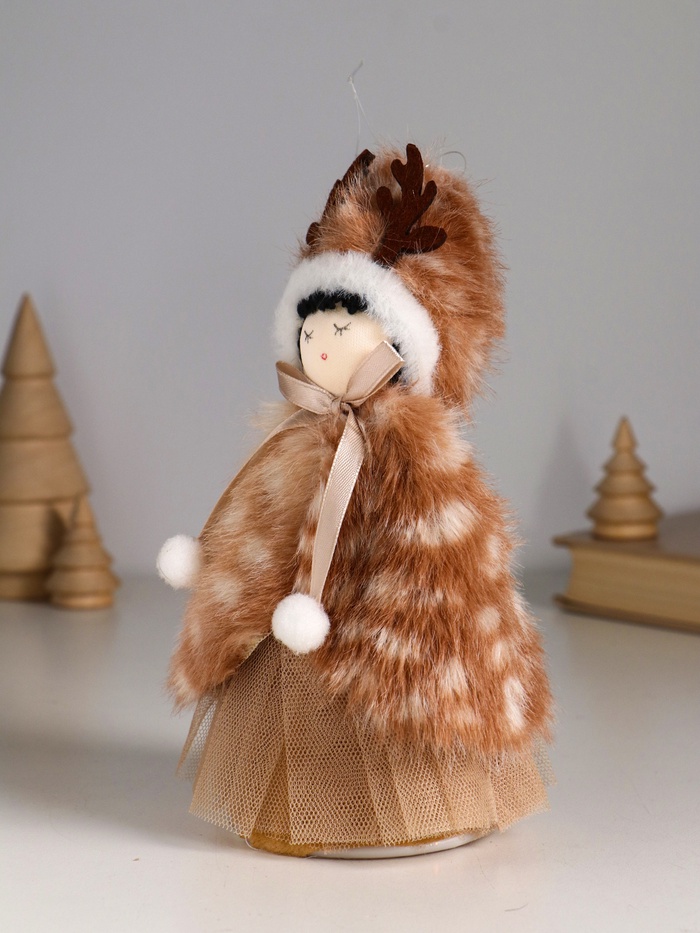 Интерьерная кукла текстильная «Девочка в меховой накидке, в шапке с рожками», 7×7×19 см