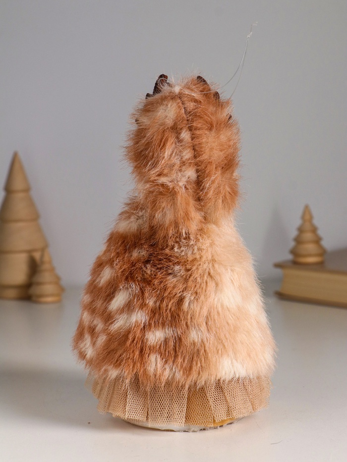 * Изысканный образ: Куколка одета в стильный современный костюмчик с меховой накидкой и забавной шапочкой с рожками. Этот продуманный дизайн делает ее уникальным декоративным элементом для спальни или гостиной.