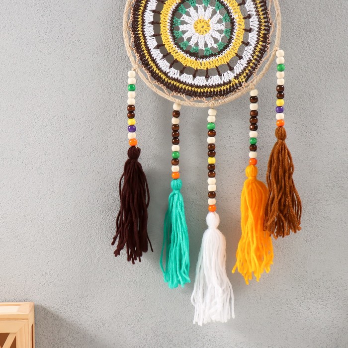 Ловец снов амулет «Вязаные круги», тёплые цвета, 20×55 см