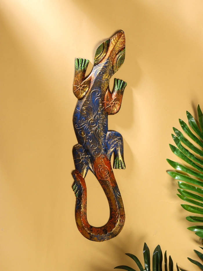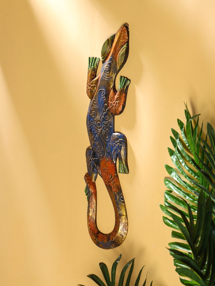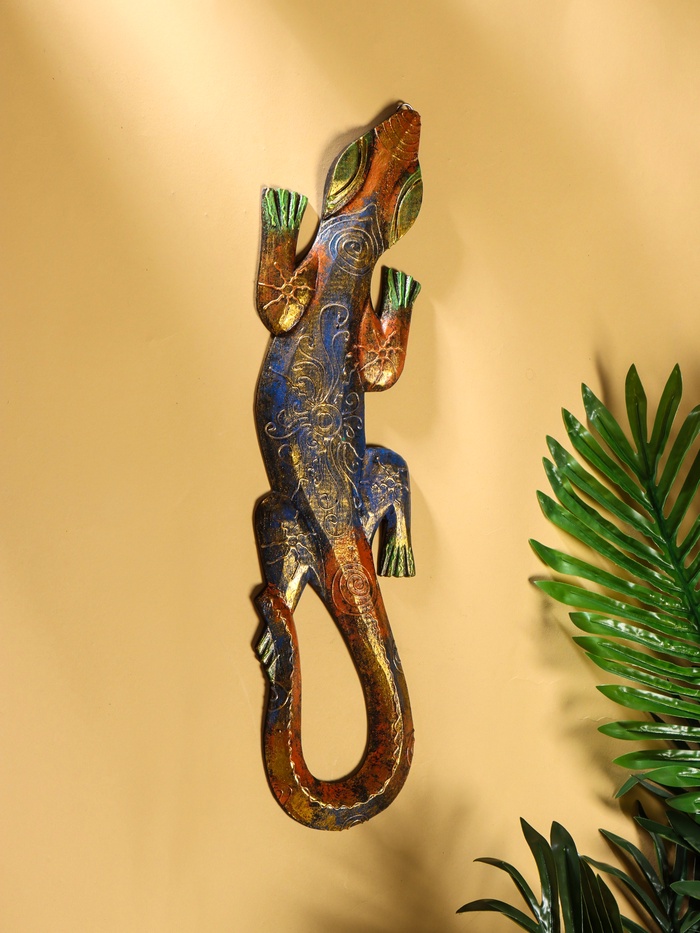 Панно «Геккон», 48×12.5×1.1 см, дерево, МИКС
