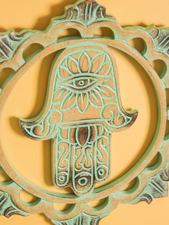 Панно «Хамса», 30×30×1 см, МДФ, бежево-бирюзовое
