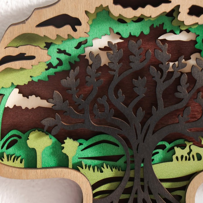 Это настенное панно — символ роста, связи поколений и вечного обновления. Фигурное дерево, вырезанное из дерева, становится центром притяжения в интерьере, наполняя пространство теплом и природной гармонией. Его универсальная тематика делает декор уместным в любой комнате: от гостиной до спальни.