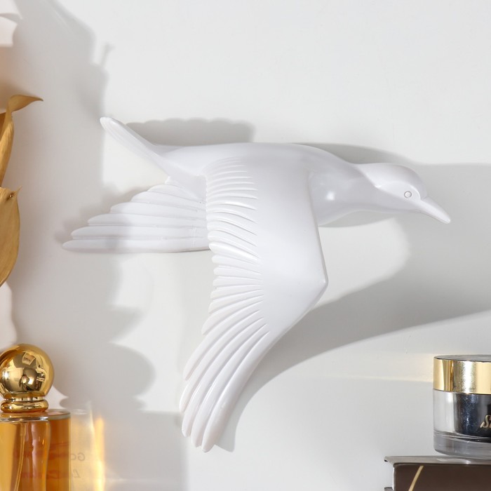 Эта настенная фигура с чайкой — образец сдержанной элегантности. Она привносит в пространство дух свободы, морского бриза и лёгкой мечтательности. Изящный силуэт птицы с опущенными крыльями, застывшей в момент покоя, создаёт умиротворяющую атмосферу и добавляет интерьеру художественную завершённость.