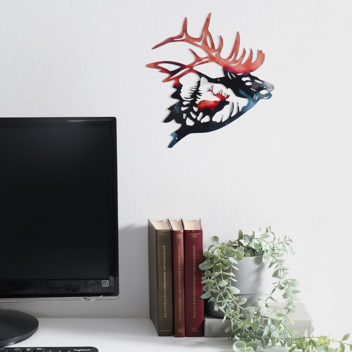 Панно настенное «Лесной олень», декор, металл, 29×30 см