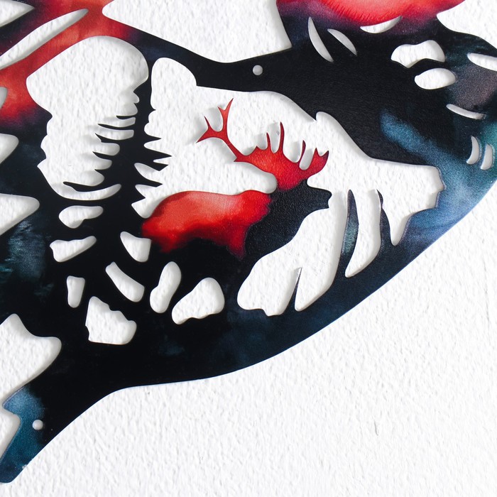 Этот настенный декор с благородным оленем привносит в интерьер дух спокойствия и природной гармонии. Металлическое панно станет стильным акцентом в гостиной, кабинете или спальне, создавая атмосферу уюта и связи с миром дикой природы.