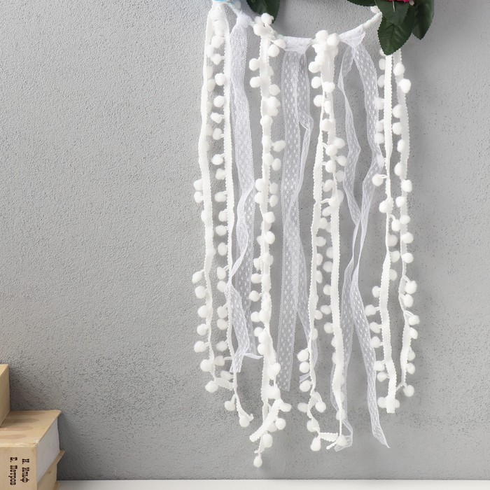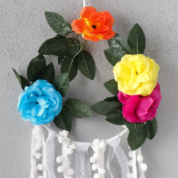 Панно настенное текстиль «Цветочный венок с бомбошками: ловец снов», декоративное, 68×20 см