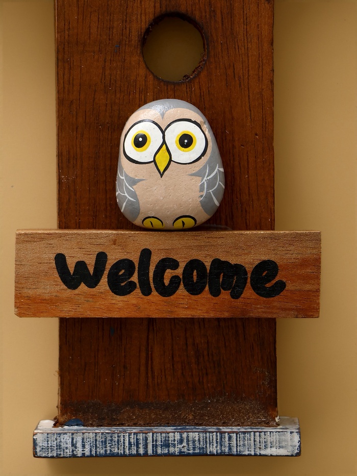 * Эстетика: стильная надпись WELCOME создает атмосферу гостеприимства