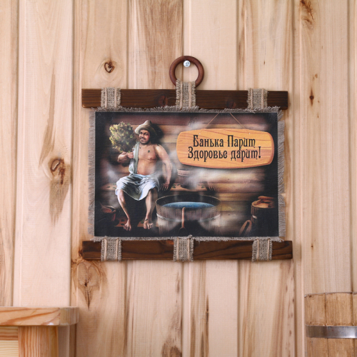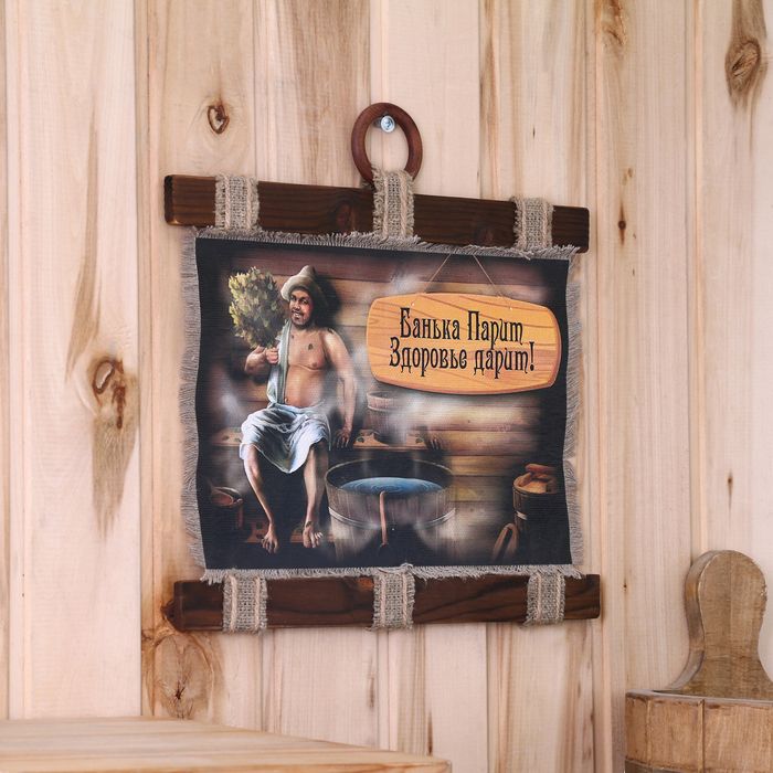 Панно станет завершающим штрихом в оформлении бани. Натуральный лён и дерево выдерживают жар и влагу, сохраняя свой вид. Простой подвес помогает закрепить декор за минуту, чтобы вы могли скорее насладиться отдыхом в обновлённой обстановке.