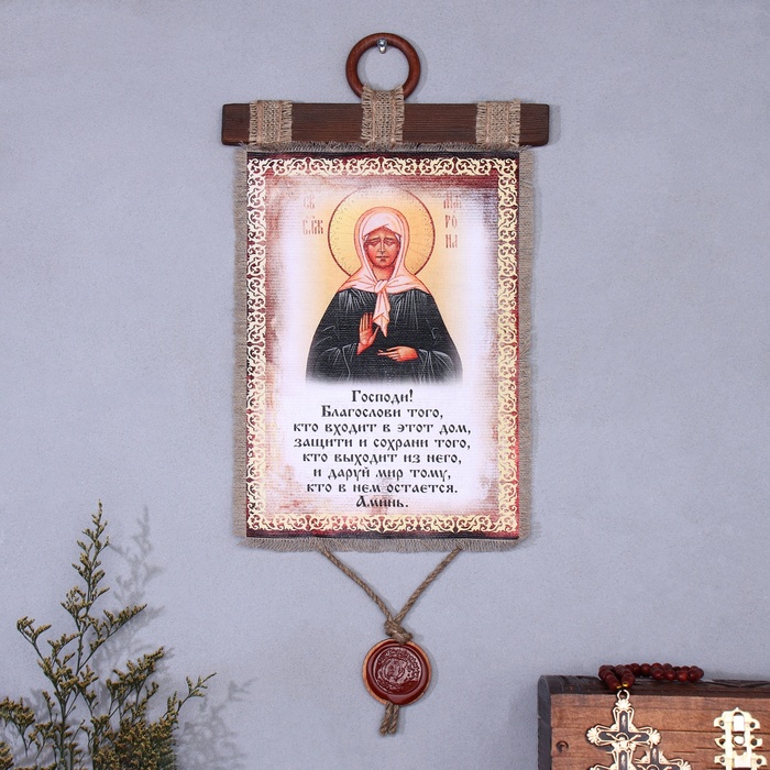 Свиток настенный «Икона с молитвой: Благословение гостей Матрона», панно
