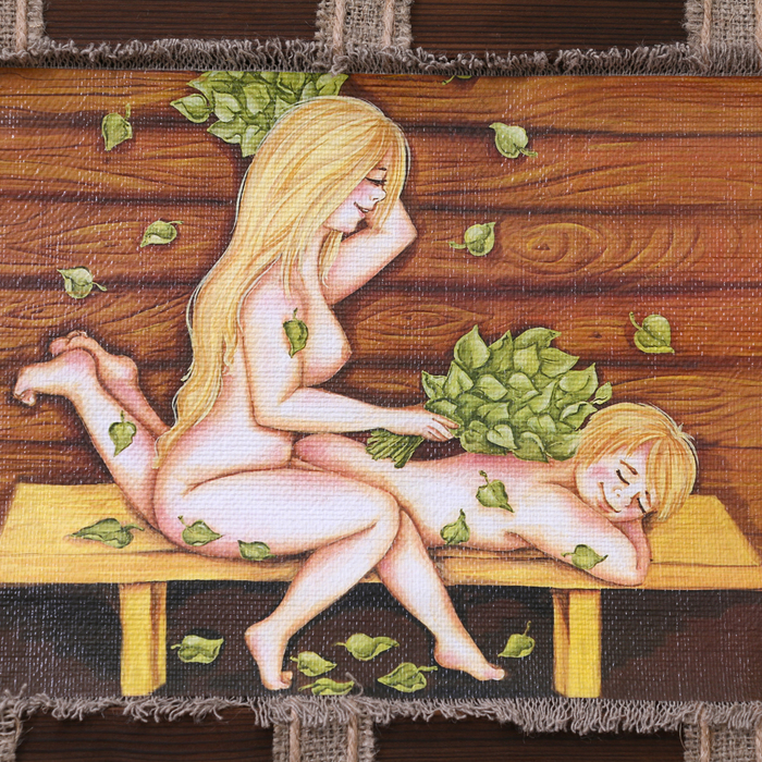 Свиток настенный «Молодёжь в баньке», панно