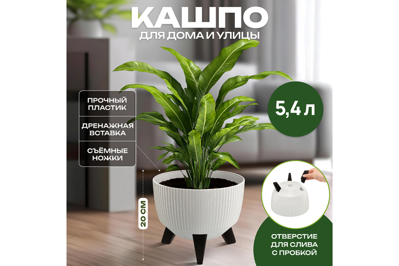 Кашпо 24×24×20 см светло-серого цвета от бренда ELCASA — это удобное интерьерное решение для квартиры или дачи. Можно использовать как напольное или настольное. Объём ёмкости 5,4 литра. Имеет подставку в виде съёмных ножек высотой 7,5 см. Без ножек высота кашпо 15 см. Внутри оснащено дренажной вставкой круглой формы размером 21×21×4,5 см. На дне горшка есть отверстие для слива излишков воды, плотно закрывается пробкой. Это удобно при поливе комнатных цветов и садовых композиций из живых растений, так как можно избавиться от застоя воды. Изделие выполнено из прочного и экологичного пластика – полипропилена. Материал устойчив к влаге и другим внешним воздействиям, благодаря чему цветочный горшочек можно использовать на улице. Подойдёт для украшения живыми цветами сада, балкона или террасы. Ножки приподнимают горшок с цветком над поверхностью, поэтому он эстетично смотрится на подоконнике, столе и даже на полу. Создайте уютную зону отдыха в любом помещении, украсив её декоративными растениями. Благодаря универсальному дизайну подойдёт под любой стиль интерьера городской квартиры, а также гармонично впишется в атмосферу загородного участка как уличное кашпо. Не рекомендуется применять абразивные моющие средства. Беречь от механических повреждений. Станет приятным подарком на любой праздник. В коллекции бренда ELCASA представлено много функциональных товаров для дома, садоводства и предметов декора. Выберите варианты на свой вкус! /